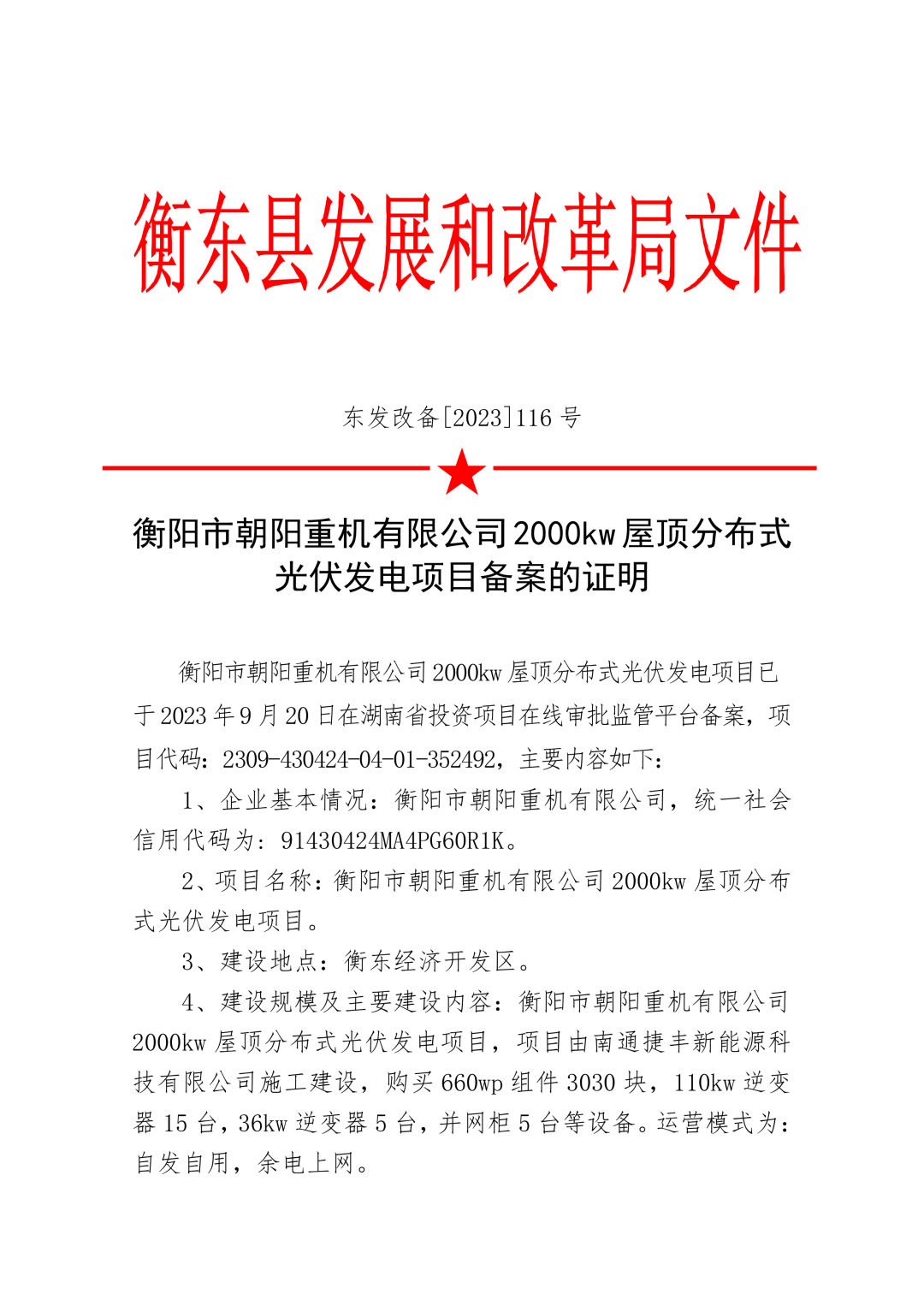 朝陽(yáng)集團(tuán)4400KW屋頂分布式光伏發(fā)電項(xiàng)目,以是公司廠房屋頂為基礎(chǔ),投資約1500萬(wàn)元,安裝660wp組件3030塊、110kw逆變器15臺(tái)、36kw 逆變器5臺(tái)、以及并網(wǎng)柜5臺(tái)、自動(dòng)清洗機(jī)器人等設(shè)備。所發(fā)電量主要自產(chǎn)自用,余電并入國(guó)家電網(wǎng)。該項(xiàng)目當(dāng)前是衡東經(jīng)濟(jì)開(kāi)發(fā)區(qū)甚至衡東縣第一家大規(guī)模的企業(yè)屋面太陽(yáng)能光伏發(fā)電項(xiàng)目。項(xiàng)目建成后將為企業(yè)帶來(lái)巨大的綠色能源,也能為公司帶來(lái)實(shí)實(shí)在在的經(jīng)濟(jì)價(jià)值。